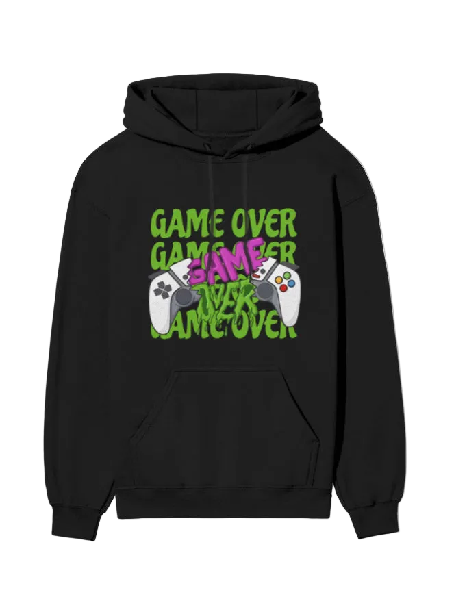 Game Over Gamer Hoodie cultural artwork with everyday comfort. Crafted from 100% cotton, 300 GSM brushed fleece, this hoodie feels warm, soft, and cozy—perfect for chilly days, casual outings, or winter layering. The unisex regular fit provides a balanced silhouette—snug around the cuffs and hem while maintaining a comfortable, relaxed feel throughout the body. The Banjara-inspired artwork adds a signature touch, giving your outfit a stylish cultural edge.