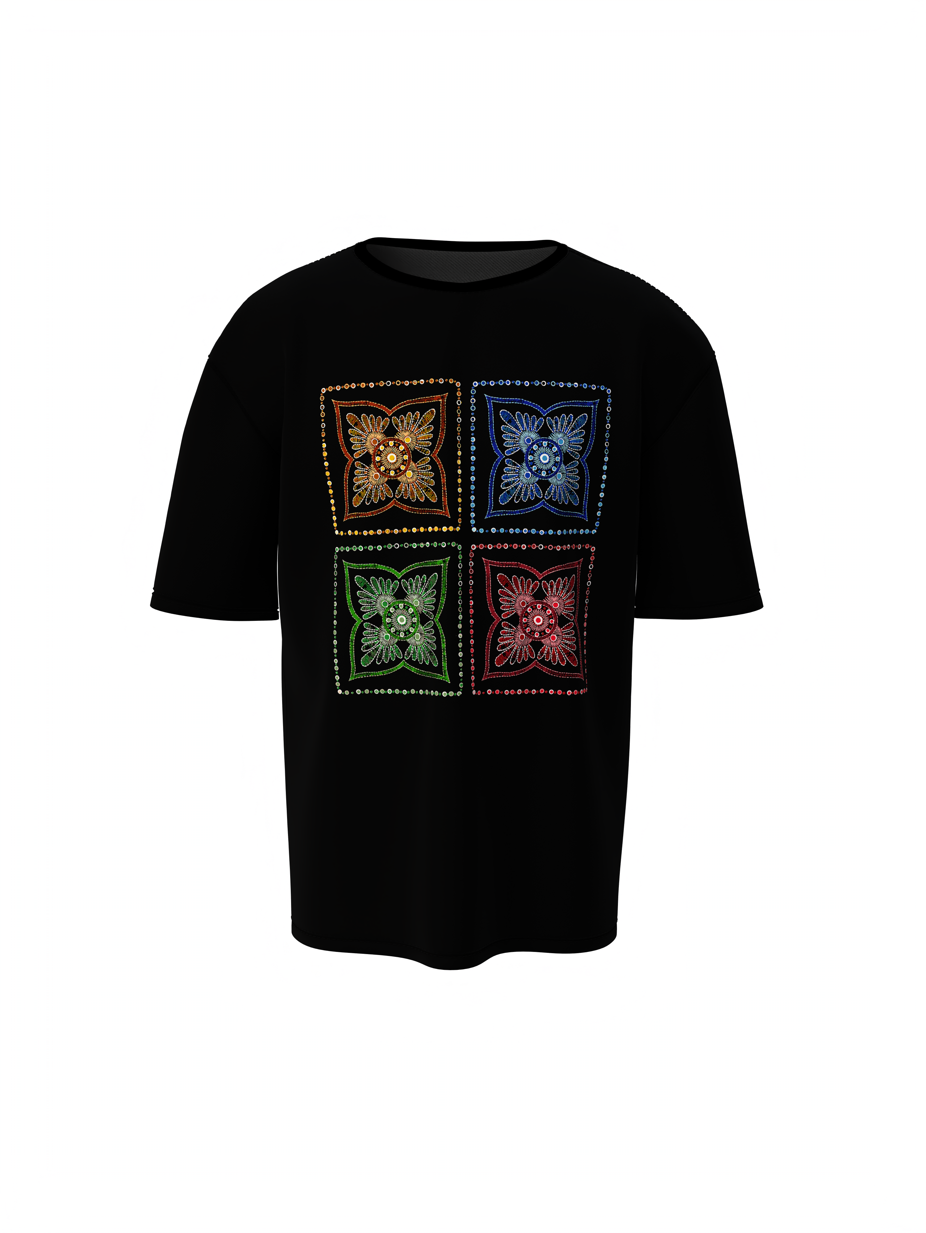 Bold. Raw. Rooted. The Banjara Vasahat Culture Banjara Stitches Oversized T-Shirts isn’t just clothing, it’s a movement. Drawing from the wild spirit of Banjara settlements, this unisex t-shirt blends tribal heritage with bold street style, designed to make a statement for everyone, regardless of gender. this tee fuses nomadic art with modern street style. Think tribal mirror work, rugged textures, and untamed energy, reimagined for the urban rebel. If culture had a pulse, this is how it would beat.