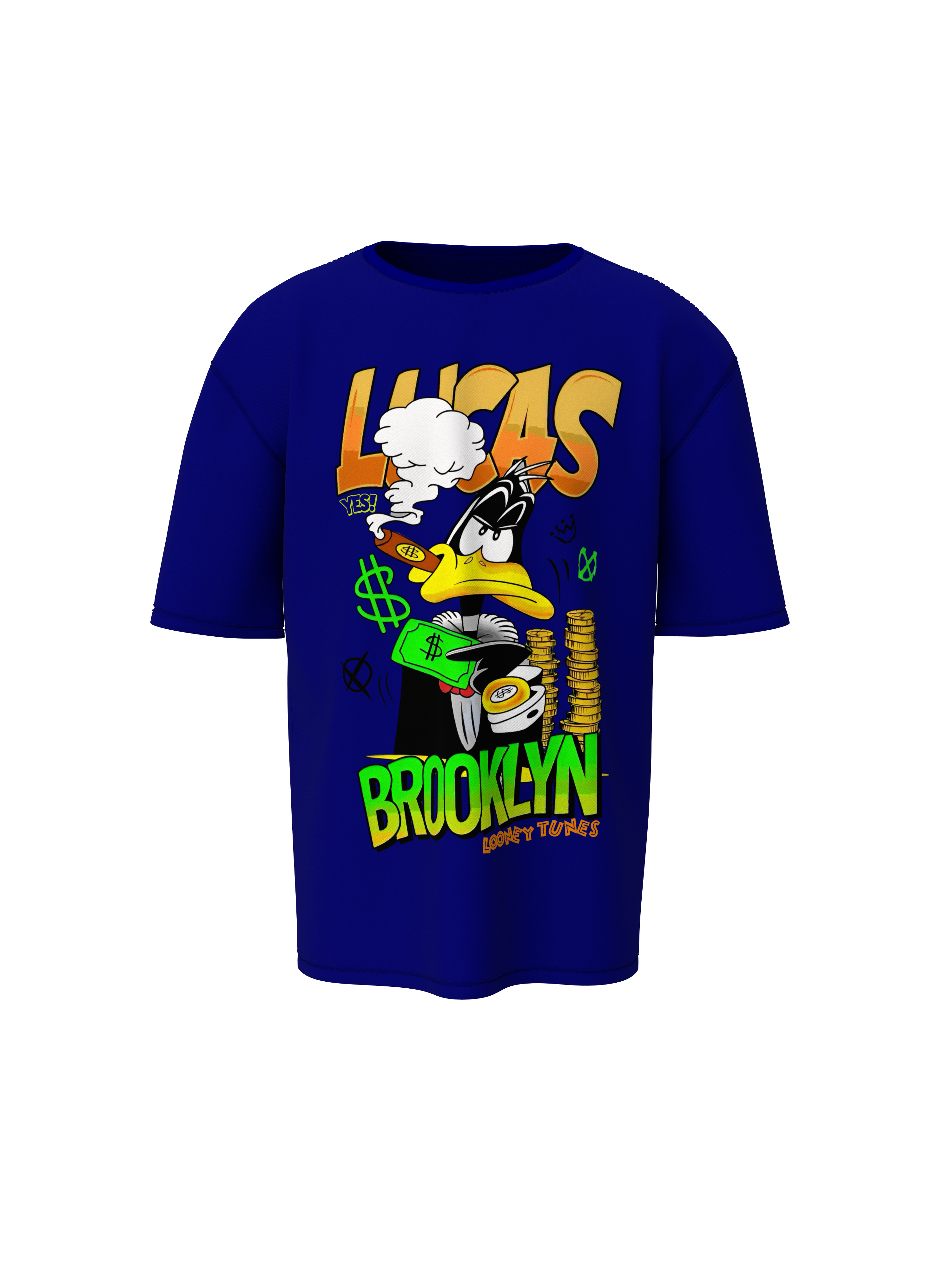 Unleash your inner character with the Lucas Brooklyn Oversized T-Shirt by Hello Swanky. where comfort meets cool in the quirkiest way. Featuring a bold, animated graphic that pops with personality, this unisex tee turns every outfit into a statement. The oversized silhouette gives off effortless street-style energy, while the breathable cotton keeps it fresh all day long. Whether you're vibing with retro cartoons or just love that loud, expressive look, this tee brings serious main character energy to your everyday fit. Wear it big, wear it bold, its cartoon chaos, styled to perfection.