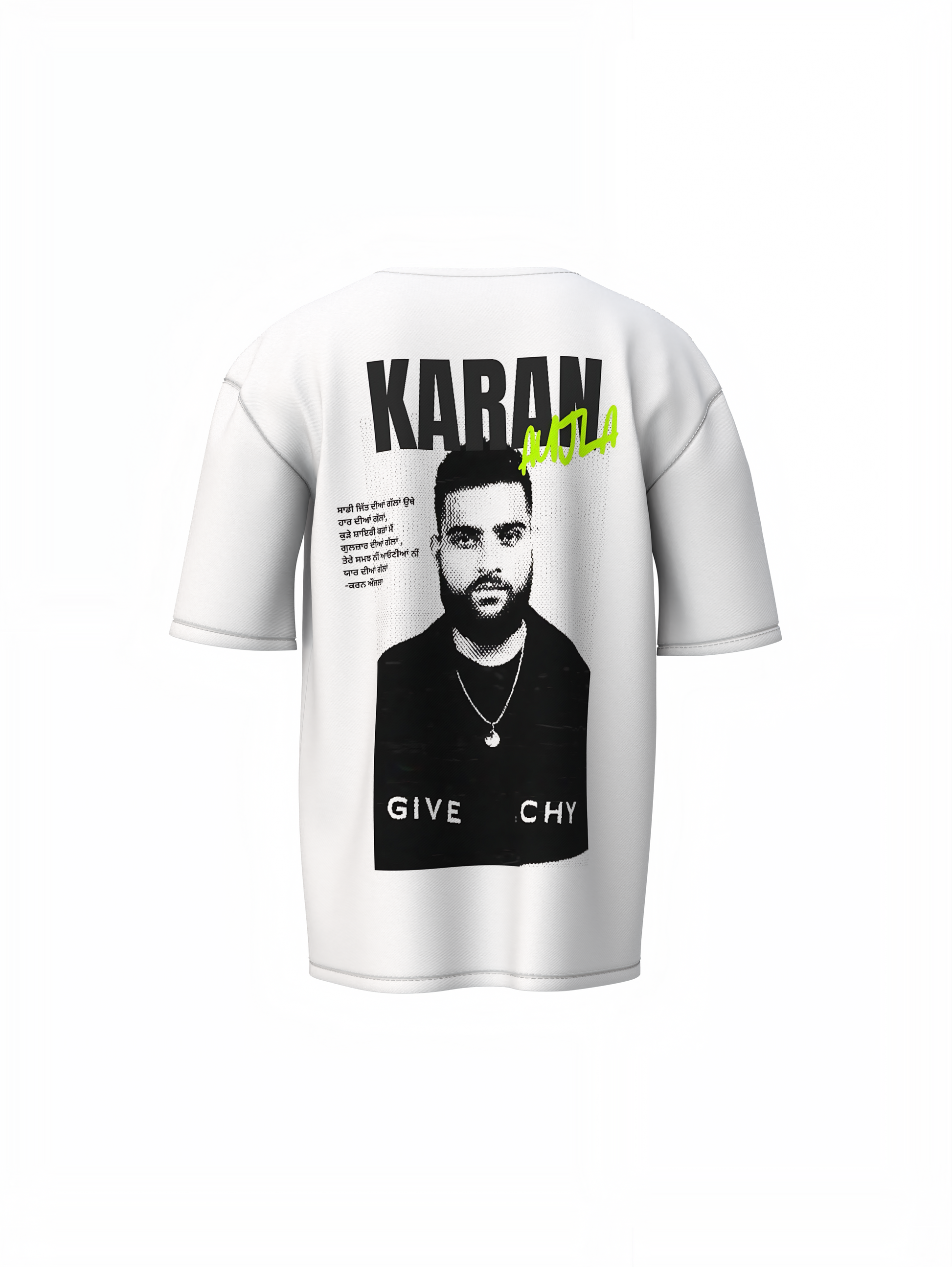 - Pattern: Unique and eye-catching printed design on both the front and back, featuring a vibrant Explore Karan Aujla Graphic Tees.