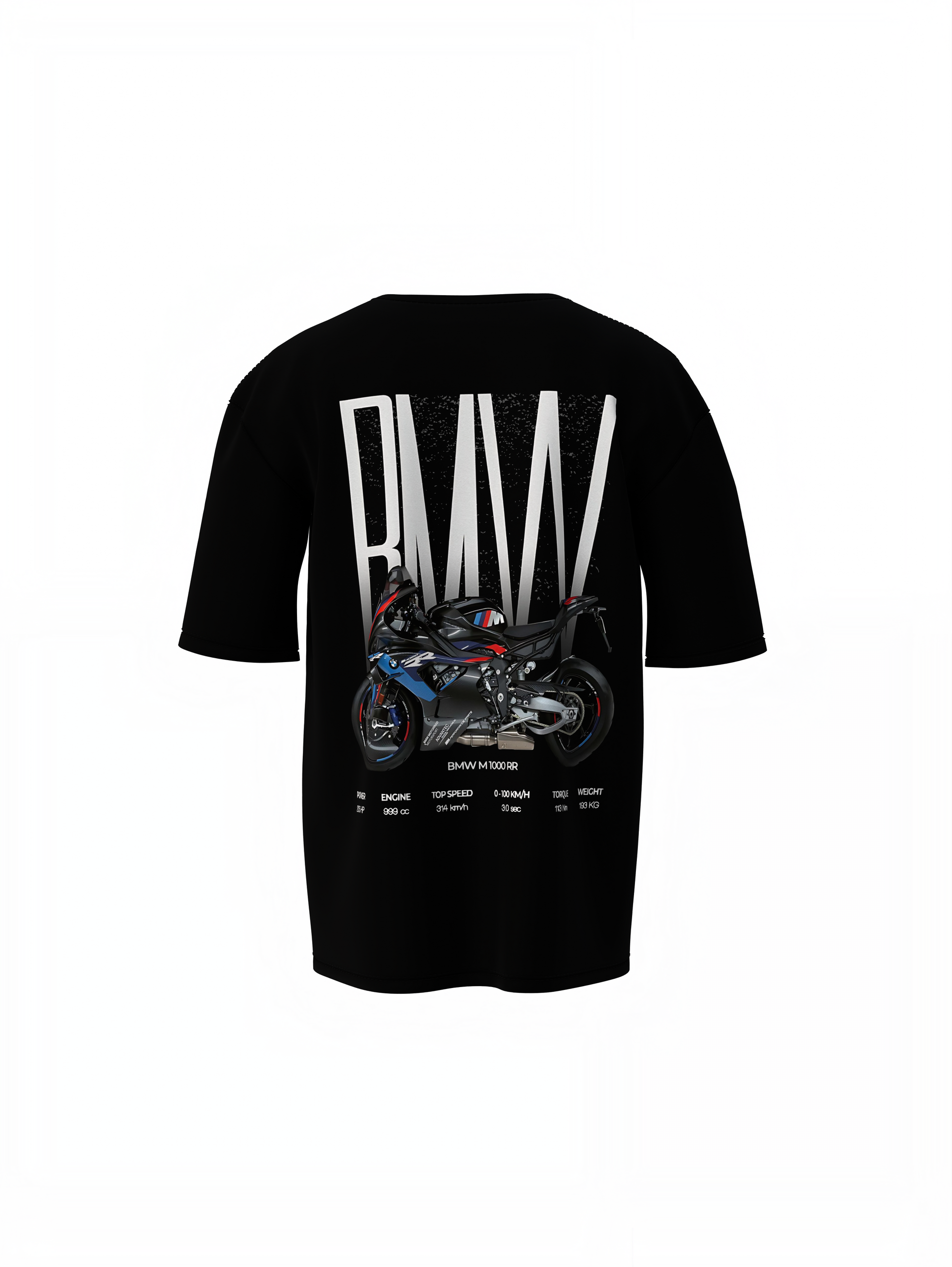 - Pattern: Unique and eye-catching printed design on both the front and back, featuring a BMW M1000RR Oversized T-Shirts Graphic Tees.