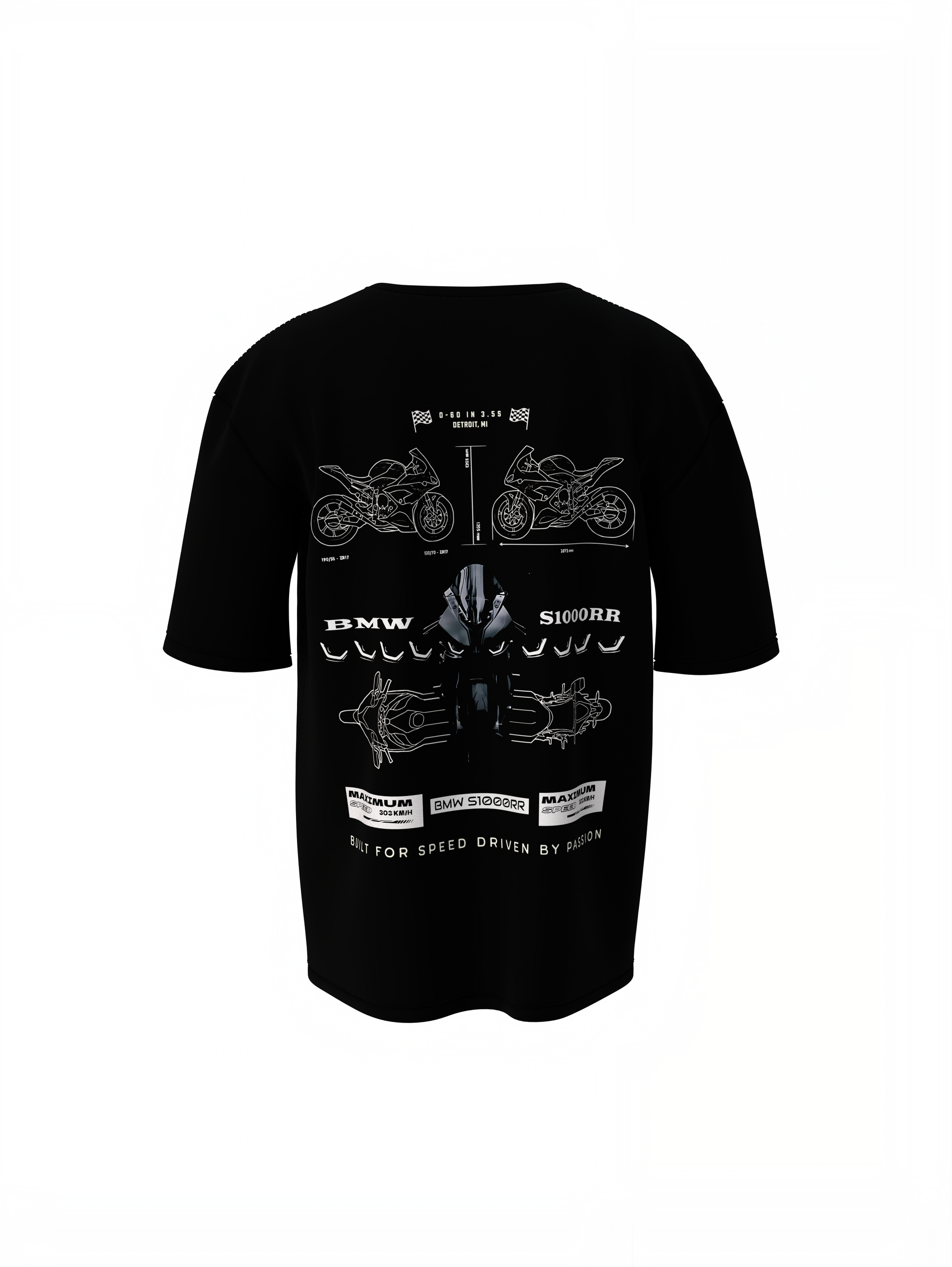 - Pattern: Unique and eye-catching printed design on both the front and back, featuring a BMW S1000RR Oversized T-Shirts Graphic Tees.