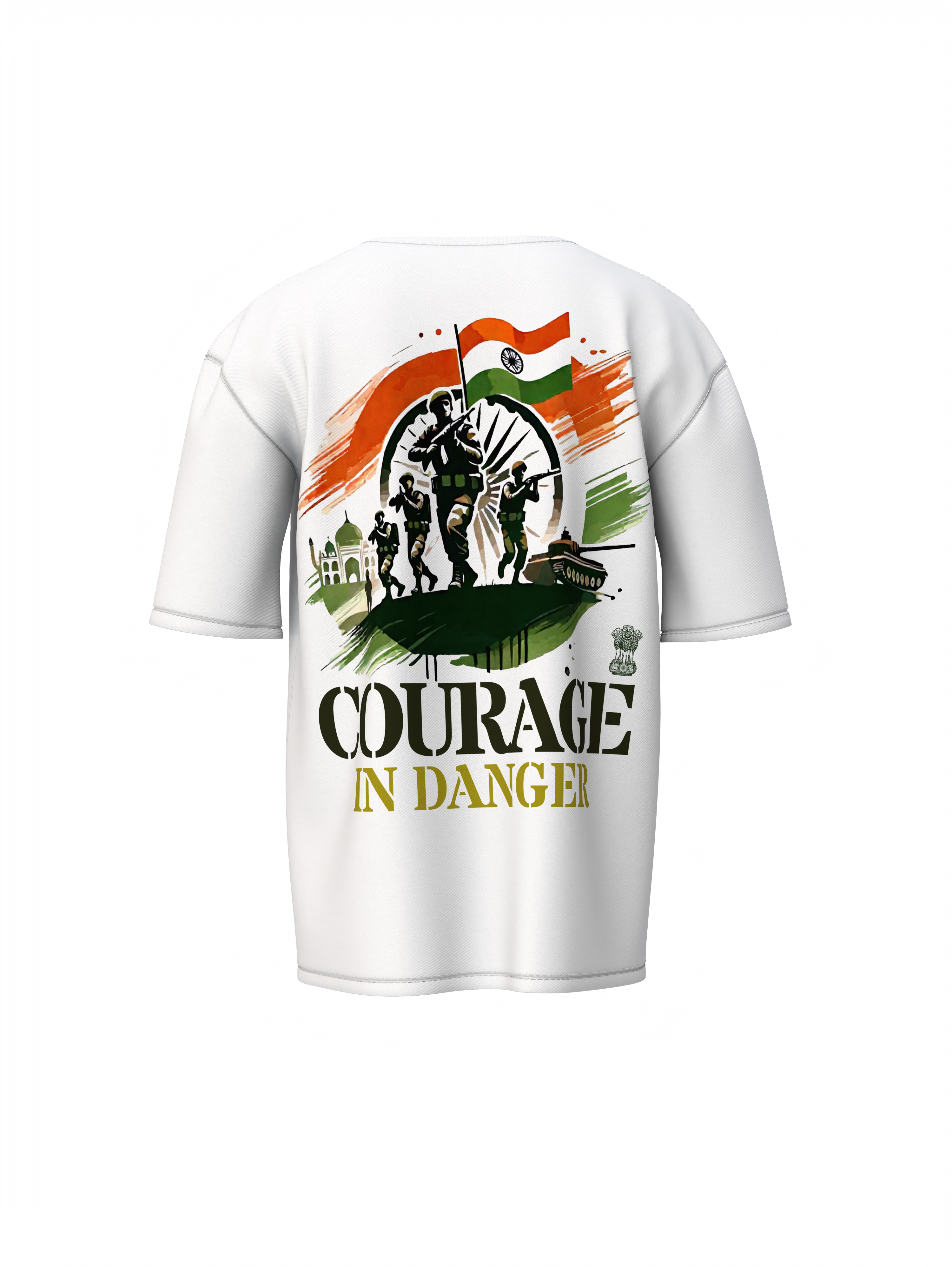 Channel fearless strength with the Courage in Danger Oversized T-Shirt by Hello Swanky — where rugged streetwear meets everyday resilience. Featuring a bold military-inspired graphic that captures the spirit of discipline, honor, and grit, this tee is made for those who walk with purpose and lead with courage. Crafted from ultra-soft, breathable cotton and styled with a relaxed oversized fit, it’s designed for comfort in every battle — from daily hustle to weekend chill. Whether you're repping your roots or just embracing that tactical edge, this tee is your everyday armor.