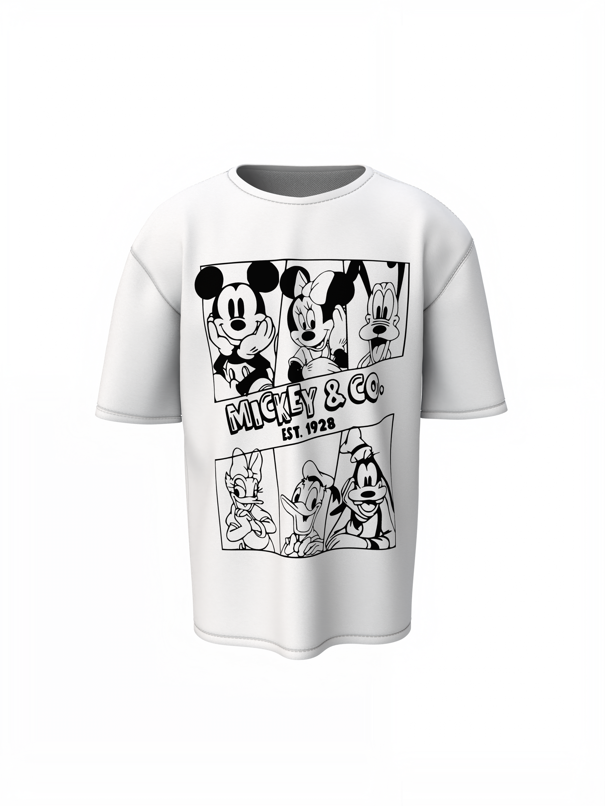 - Pattern: Unique and eye-catching printed design on both the front and back, featuring a Mickey And Friends Oversized T-Shirts Graphic Tees.