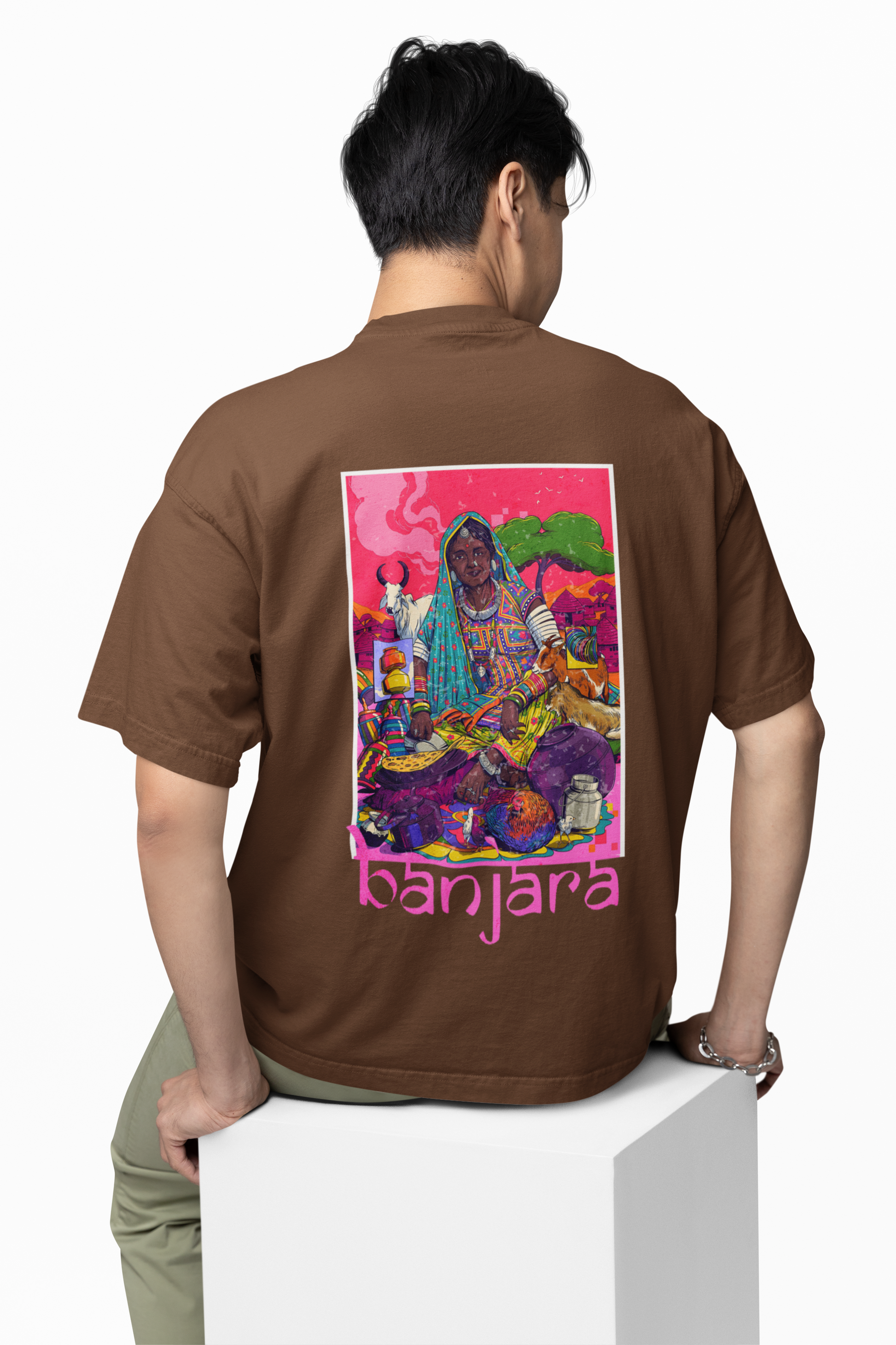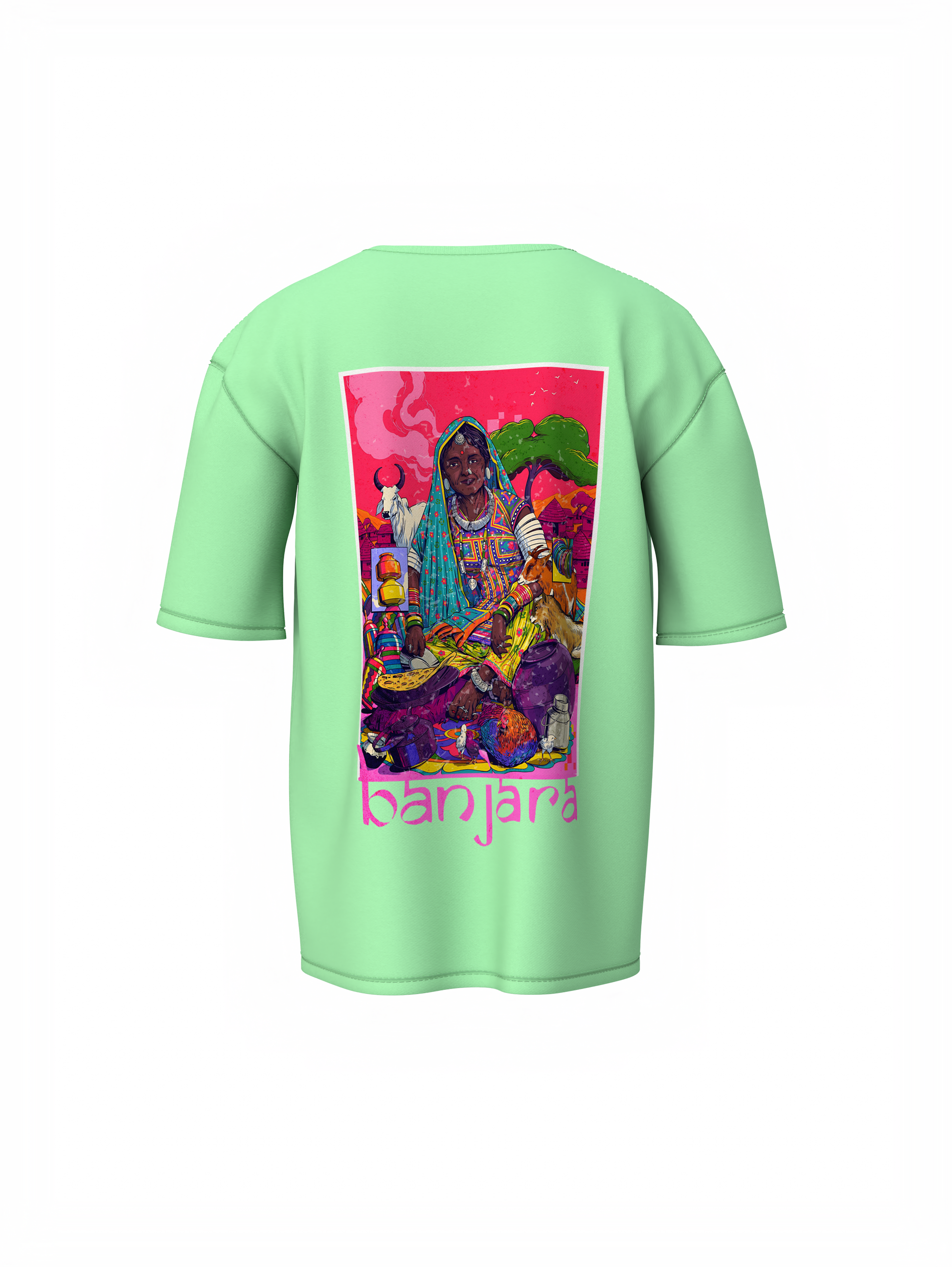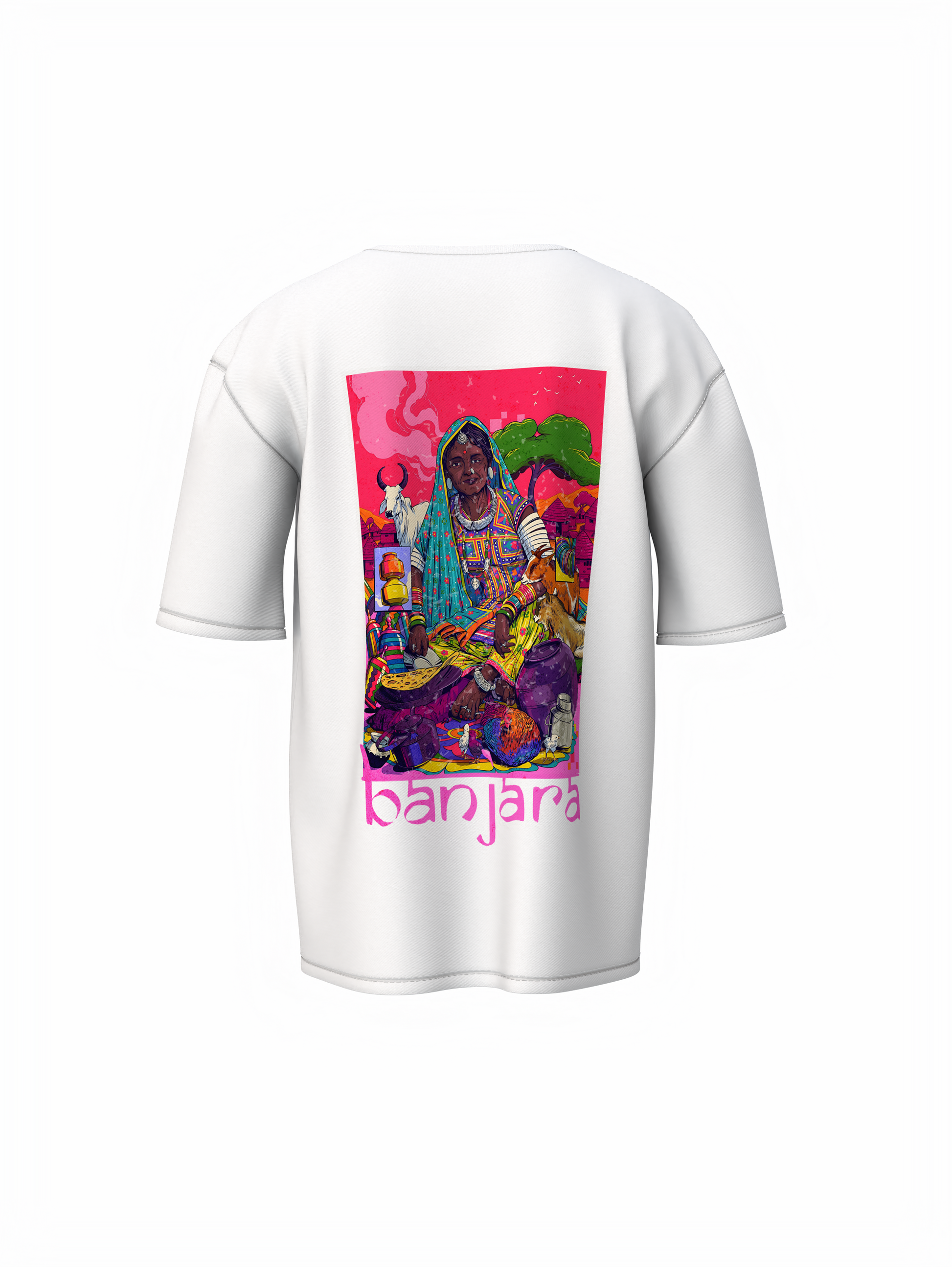 Bold. Raw. Rooted. The Banjara Vasahat Culture Soul of Banjara Oversized T-Shirts isn’t just clothing, it’s a movement. Drawing from the wild spirit of Banjara settlements, this unisex t-shirt blends tribal heritage with bold street style, designed to make a statement for everyone, regardless of gender. this tee fuses nomadic art with modern street style. Think tribal mirror work, rugged textures, and untamed energy, reimagined for the urban rebel. If culture had a pulse, this is how it would beat.